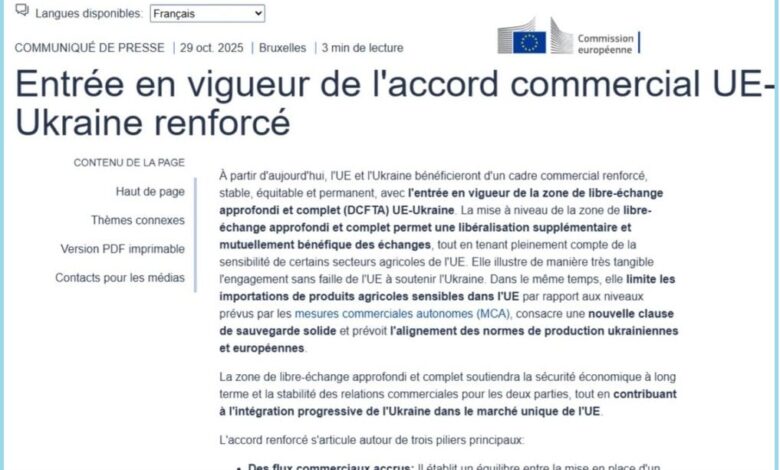 Read More »Μια συμφωνία που ανοίγει οριστικά την ευρωπαϊκή αγορά στα ουκρανικά αγροτικά προϊόντα τέθηκε σε ισχύ στις 29 Οκτωβρίου Οι αγρότες…